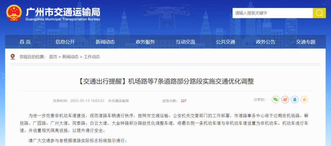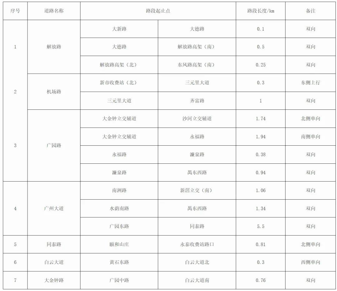 据了解,为进一步完善非机动车道建设,规范道路车辆通行秩序,按照市交通运输、公安机关交管部门的工作部署,市道路事务中心将于近期在机场路、解放路、广园路、广州大道、同泰路、白云大道、大金钟路部分路段优化调整车道,将最右侧一条机动车道与非机动车道设置为非机动车、机动车混行车道,并设置相关隔离设施,以提升通行安全。